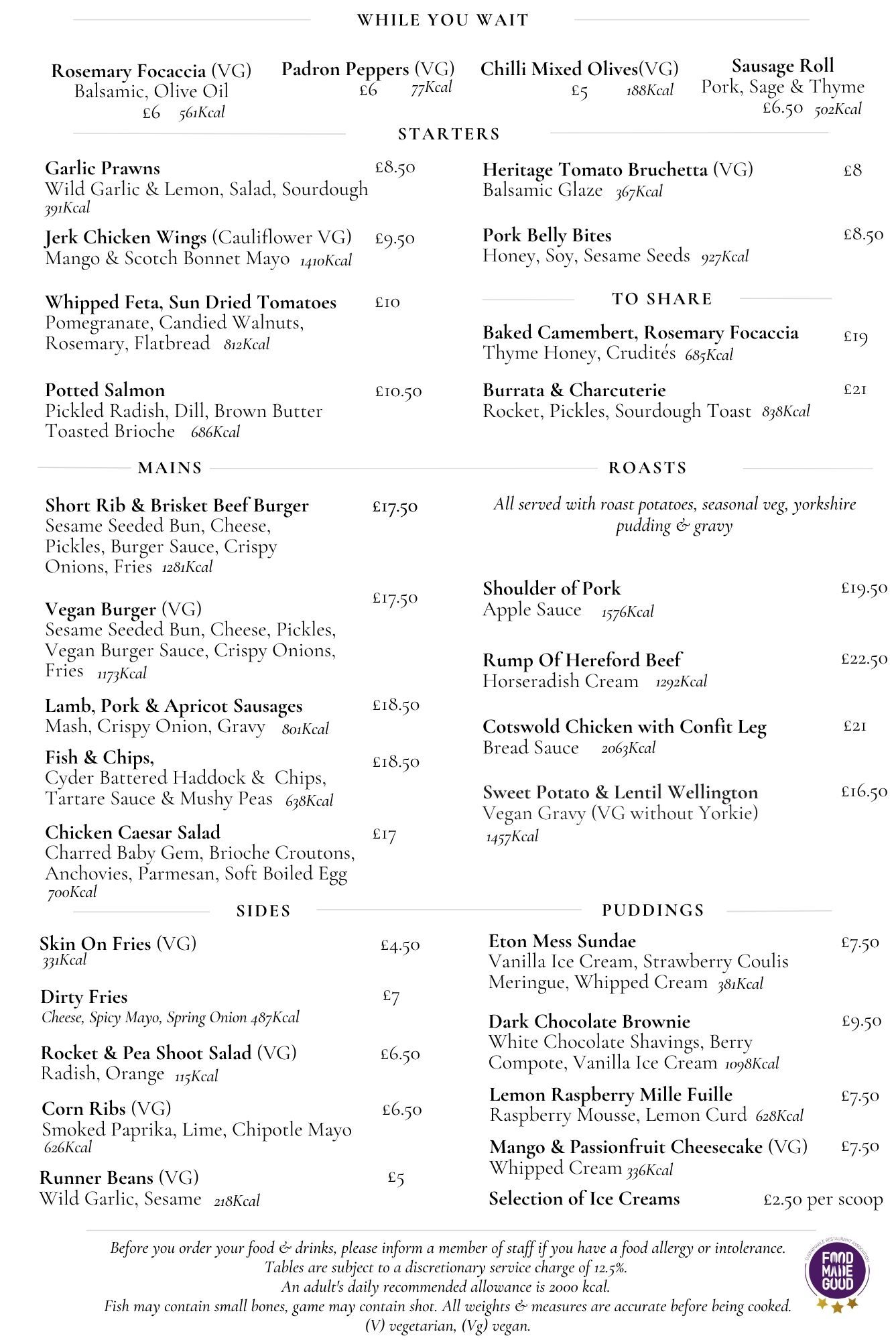 Our menus change seasonally and are full of fresh ingredients championing British farming.